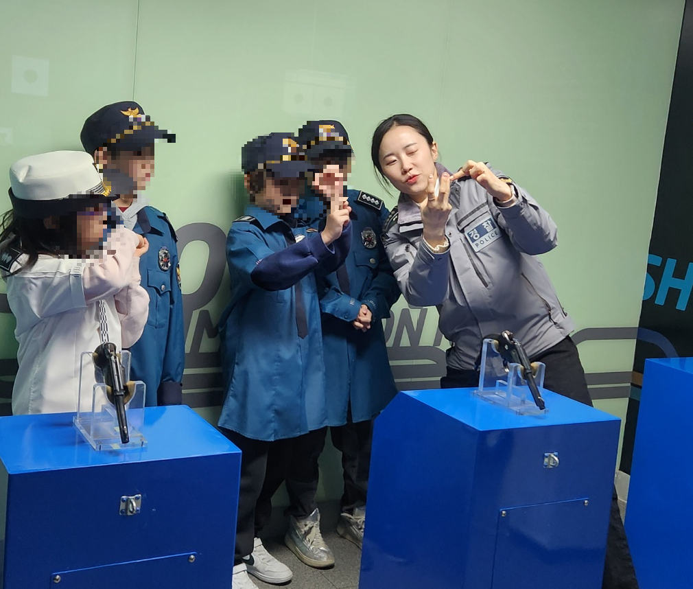 아이들은 청소년경찰학교에서 경찰복을 입어보고, 사격 시뮬레이션을 체험해 보며